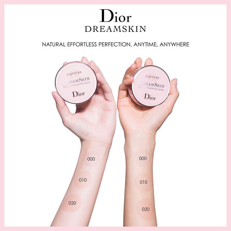 - Dior Dreamskin Perfect Cushion như “kẻ tiên phong” cho xu hướng “Dưỡng da kết hợp trang điểm” vì một vẻ đẹp khỏe mạnh. Với chiết xuất từ hoa Longua và Olipia từ khu vườn Dior, kết hợp cùng công nghệ Dreamskin và chỉ số chống nắng SPF50/PA+++, các nếp nhăn, đốm nâu, vết mẩn đỏ sẽ được cải thiện, độ đàn hồi của da được phục hồi, làn da trở nên đều màu và rạng rỡ rỡ hơn.